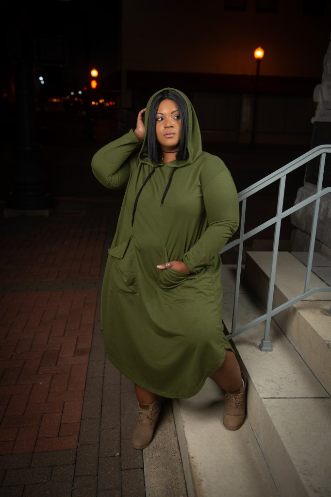 I’m always Looking for the perfect airplane outfit that will keep me cute and picture ready for anything I step into right off the plane. This two-pocket hooded dress is perfect for the comfort needed for travel as well as taking that perfect photo right off the plane.